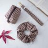Χειροποίητο σετάκι σε βαμβακερό ύφασμα ( Scrunchie – mini νεσεσέρ – μικρό μπρελόκ )